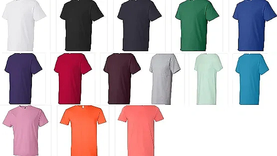 Selection of these colors for T-Shirts are available for production as soon as your order is placed. White, Black, Navy, Kelly green, Royal, Purple, Red, Maroon, Sports Grey, Teal Ice, Caribbean Blue, Charity Pink, Orange, Coral Silk. Available in sizes S-3XL